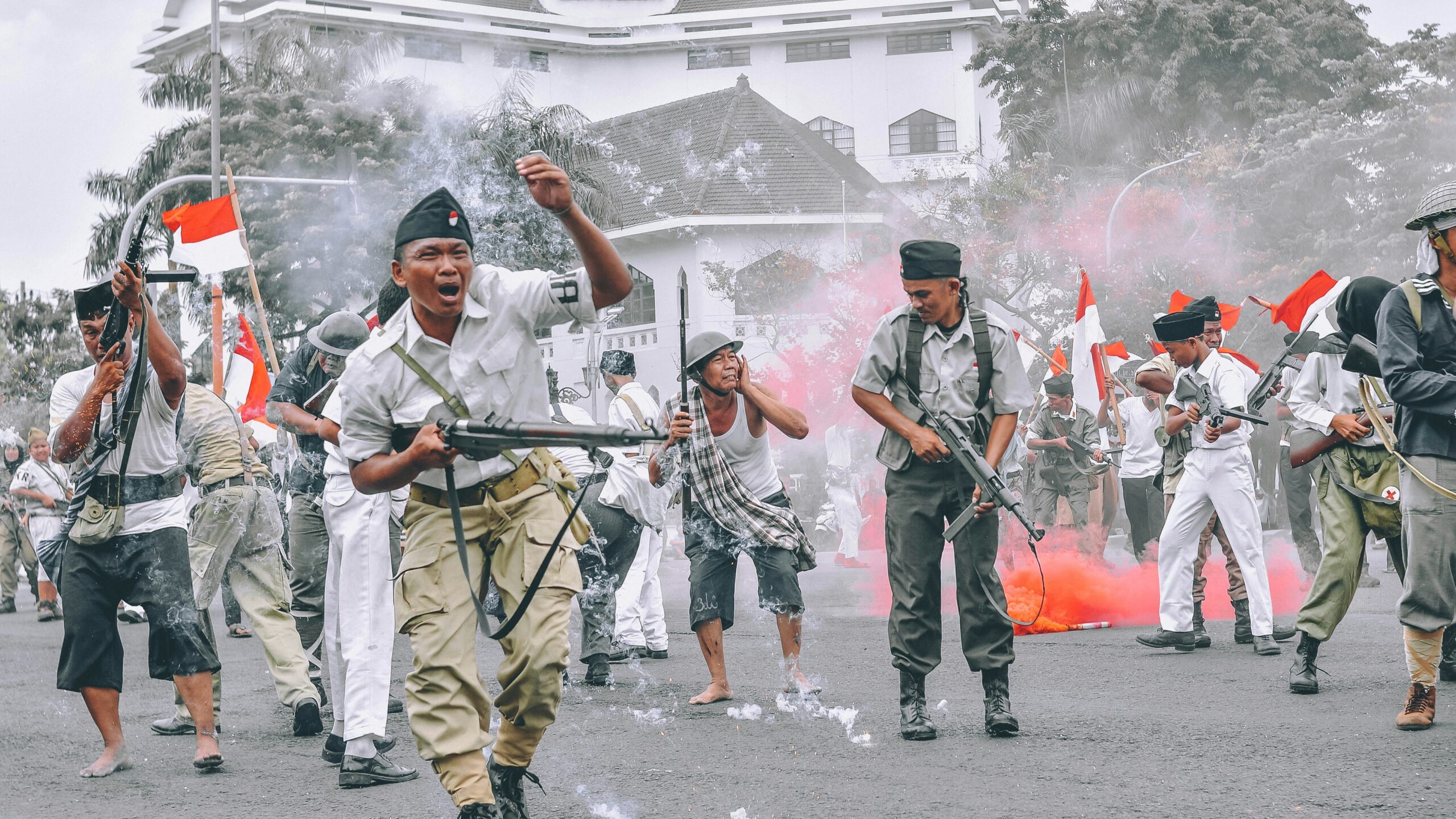 Setiap hari Minggu, Car Free Day (CFD) di ibu kota Jakarta menjadi ajang berkumpulnya warga. Namun, kali ini suasana berbeda dengan hadirnya aksi teatrikal perang yang menarik perhatian. Warga Ibu Kota Jakarta tampak antusias menyaksikan pertunjukan tersebut. Mereka berdiri berdesakan, memandang penuh rasa ingin tahu. Dengan kostum dan properti yang mendetail, para pemain membawa penonton seolah-olah terlempar ke dalam sejarah peperangan.